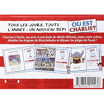 1 unité(s) de cet article soldée(s) à partir du 8 janvier 2020 8h (uniquement sur les unités vendues et expédiées par Amazon)Passez une bonne année avec Charlie ! Des énigmes énigmatiques, des questions tordues, des foules à explorer à la recherche de Charlie et de ses amis, voici une éphéméride avec 366 surprises à découvrir tout au long de l'année.